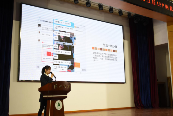 在每支队伍展示完自己的APP后,各评委老师都深刻地剖析并给出了自己的建议。“食刻”的主讲人王玥表示:“这次比赛看到了许多别的团队的优秀作品展示,都特别有想法,每一份作品都凝聚了每一位成员的心血与努力。同时从老师评委那里得到了非常有建设性的建议,使我们眼界更加开阔。在比赛的准备的过程中,不仅是团队的协作分工,也是对自己能力的提升吧!最后从宣讲到答辩再到听完老师们的建议,觉得这段时间的准备与花的时间都是值得的!”