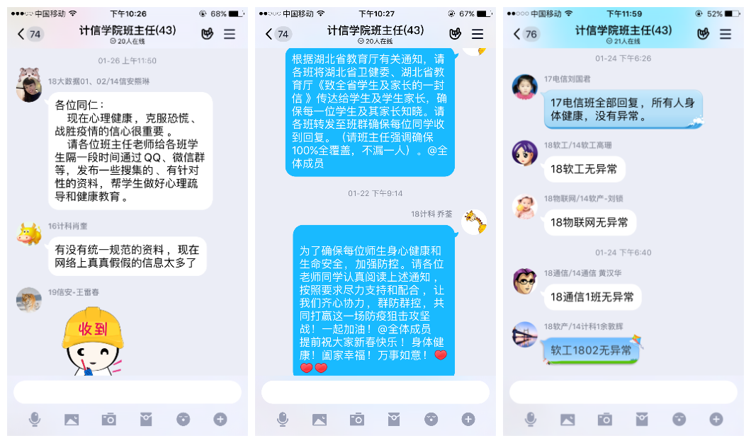 公司认真落实“日报告”和“零报告”制度,组织公司辅导员、班主任老师、班长、生活委员、网格员每天动态摸清每一名员工的动向及健康状况,密切关注跟进确诊、疑似、亲友病例等特殊员工群体的情况,及时上报公司,并对员工尽可能提供帮助并加以引导,坚定员工战胜疫情的信心。