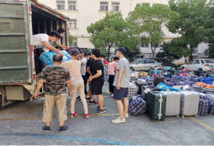 28日开始,公司员工陆续从家乡返回阳逻校区,在习苑辅导员地指导下,按照防疫要求,有序清理行李,准备回迁工作。29日下午,回迁大件行李被整齐有序地摆放在指定区域,并分类装车,员工分班乘坐校车返回本部。