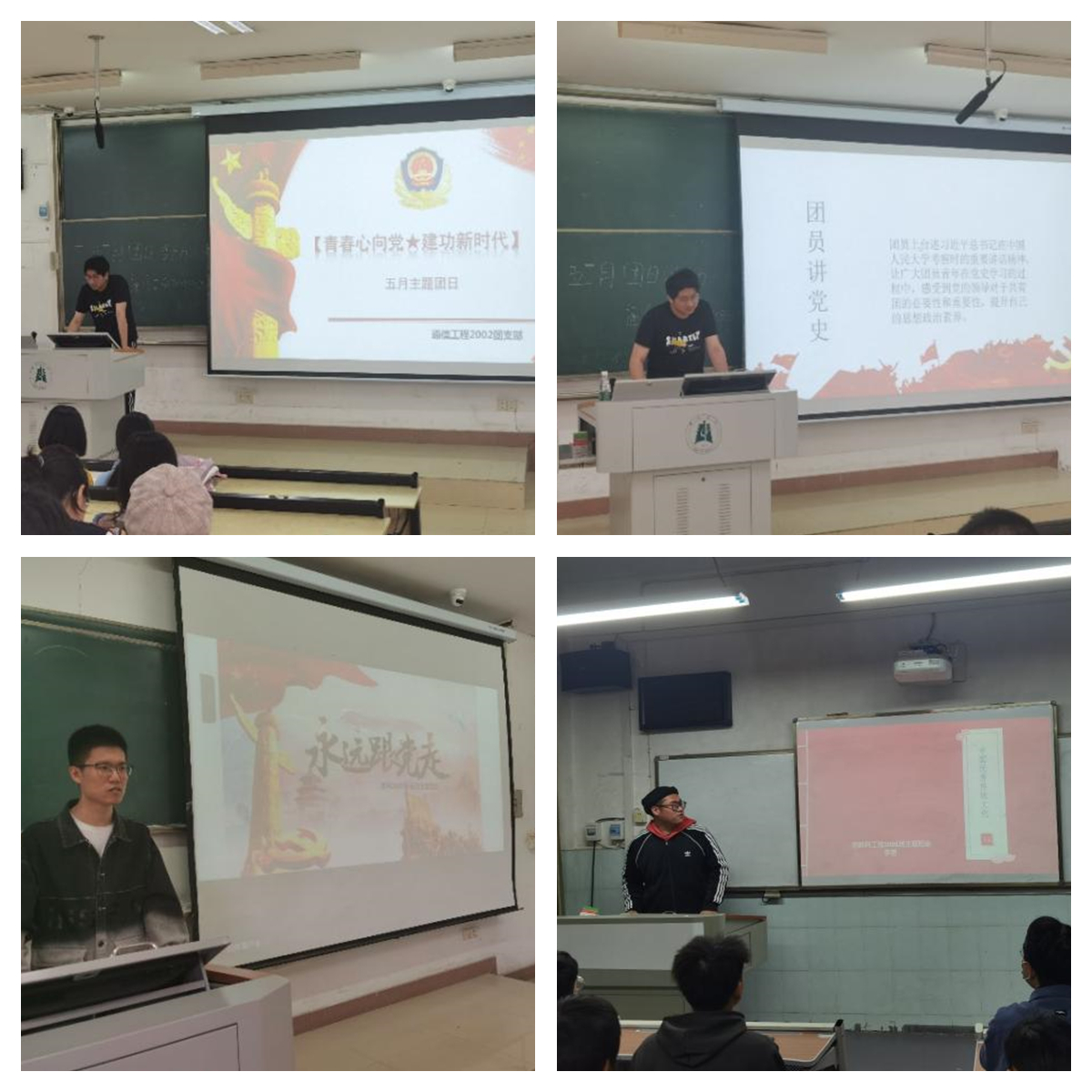 5月14日晚,通信工程2002班以团员宣讲党史的方式召开“青春心向党,建功新时代”主题团日活动,引导同学们厚植爱党情怀,深刻领会党中央对青年一代的亲切关怀、对共青团事业的高度重视。朱芝琪同学表示,作为新时代的青年,我们要不断学习探索,练就过硬本领,努力实现人生价值,更要自觉把个人梦想积极融入到党和国家发展的伟大事业中去,要以先辈为榜样,努力为祖国发展贡献自己的一份力量。