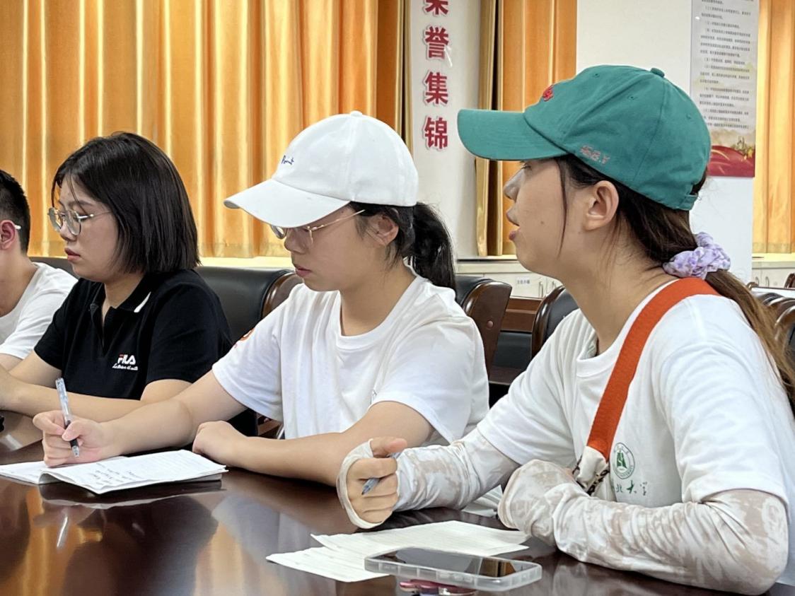 图为实践队员咨询冯局长麻城相关情况并做笔记。