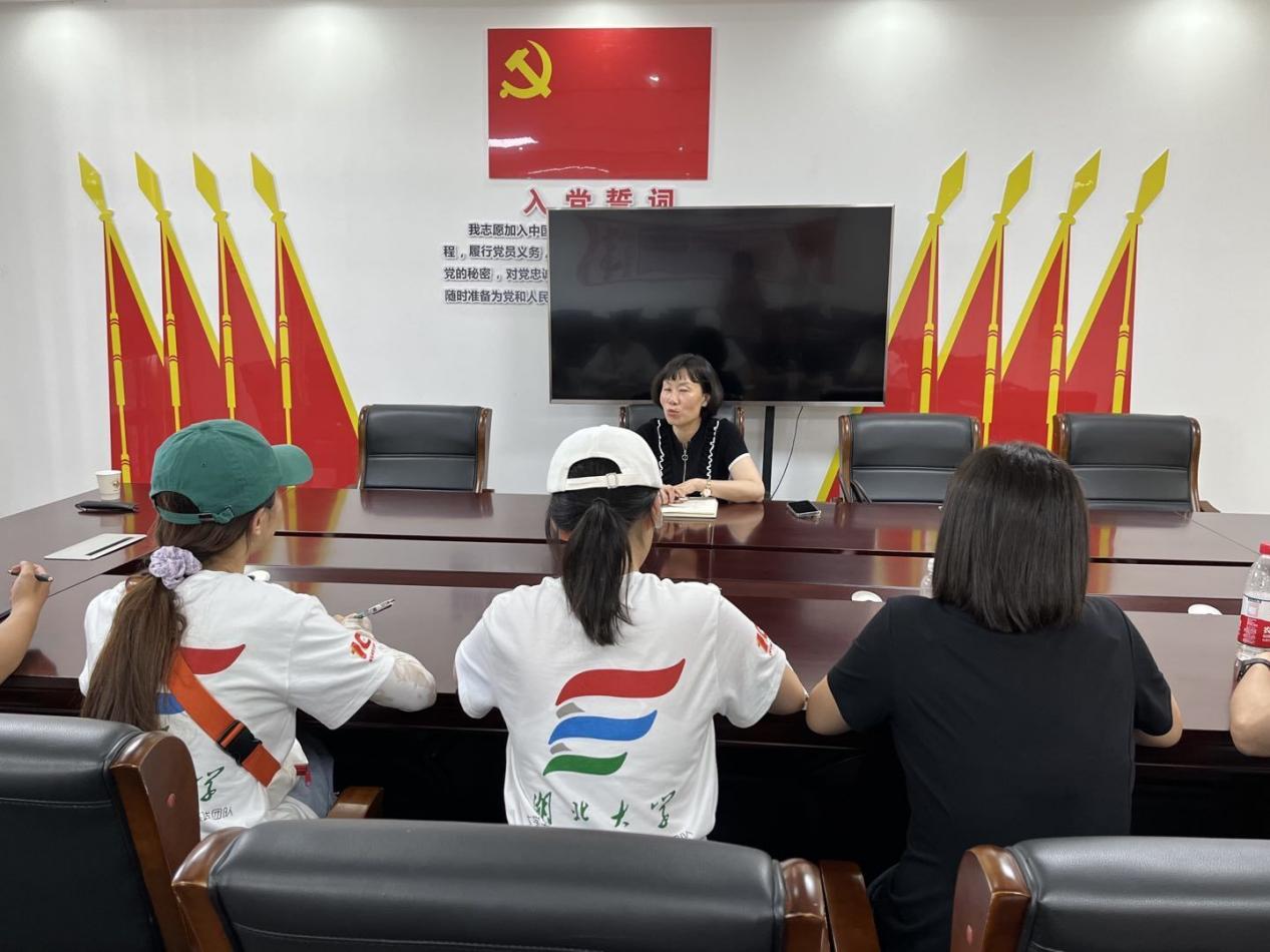 图为麻城市文化和旅游局冯局长向实践队员介绍麻城红色文化资源开发及利用情况。