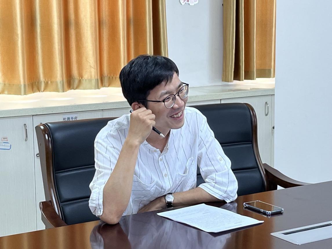 图为实践队员回访时冯局长了解实践小组调研情况。