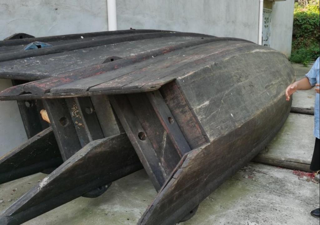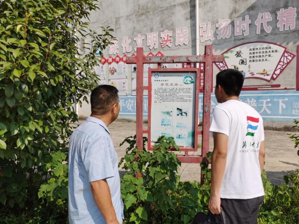 然后实践团队来到了穿花龙舟传习基地。“我们这里的龙舟不像每次电视里播出的龙舟比赛那样是又细又长的龙舟,咱们的龙舟啊平日里是要兼顾捕鱼这样的日常生产活动的,等到节日里才给他装上各种装饰和大鼓。当初奥运会一个国家出一个代表性项目时,中国出的就是咱这里的龙舟!”工作人员介绍到。