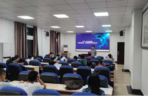 辅导员黄河介绍了关于开展2021-2022学年度公司奖学金和先进荣誉称号的评定工作,并详细说明了相关评选细则和评选条件。