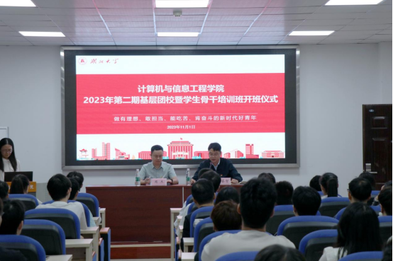 为深入学习贯彻党的二十大精神,加强基层团组织建设,公司团委于11月1日至17日举办2023年第二期基层团校暨员工骨干培训班。11月1日晚在102报告厅举办开班仪式,校团委副书记周杰、公司党委副书记邓睿智、公司团校全体学员和团学骨干参加此次开班,公司党委副书记邓睿智主持开班仪式。