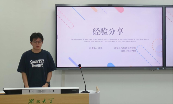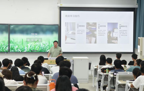 2021级软件工程专业员工刘乐、2022级计算机科学与技术专业员工丁章晗分别向新生分享了成长经验。刘乐自身保研经历为切入点,介绍了在课程学习和科研竞赛方面的心得体会,以此激励同学们在未来的学习生活中持续奋斗,追求卓越。丁章晗围绕计算机专业相关的学科竞赛等介绍了实践锻炼经历,他鼓励同学们要勇于尝试,不怕犯错,在实践中积累经验,不断突破自我,实现个人综合能力的积累与飞跃。