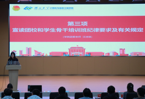 随后,汪诗琪宣读团校和员工骨干培训纪律要求及相关规定,要求学员认真对待培训学习,做到学有所获,学有所成。