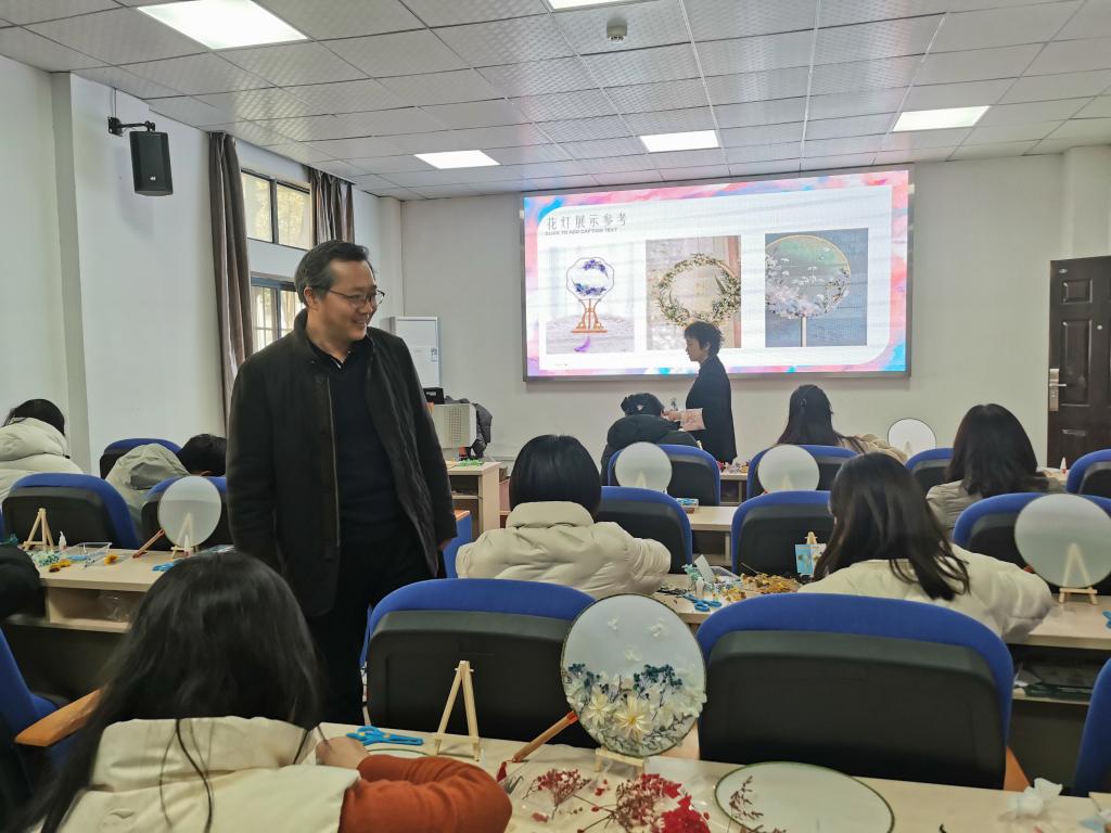 教学老师为大家讲解了团扇的历史,并现场指导大家选择花材、设计构图、搭配,在欢声笑语中空白团扇被大家的巧手改造得花团锦簇,将一把把寓意合欢吉祥的团扇演绎出不同的韵味,大家把对美的追求融入到一把把团扇之中。