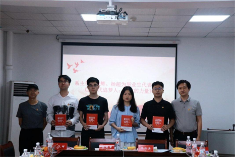 会上,余敦辉和杨超为毕业生代表赠送《新时代追梦人:榜样的力量》一书,寄语毕业生在未来人生中时刻牢记“日思日睿,笃志笃行”的校训,做好人生的选择,持之以恒,实现人生目标。