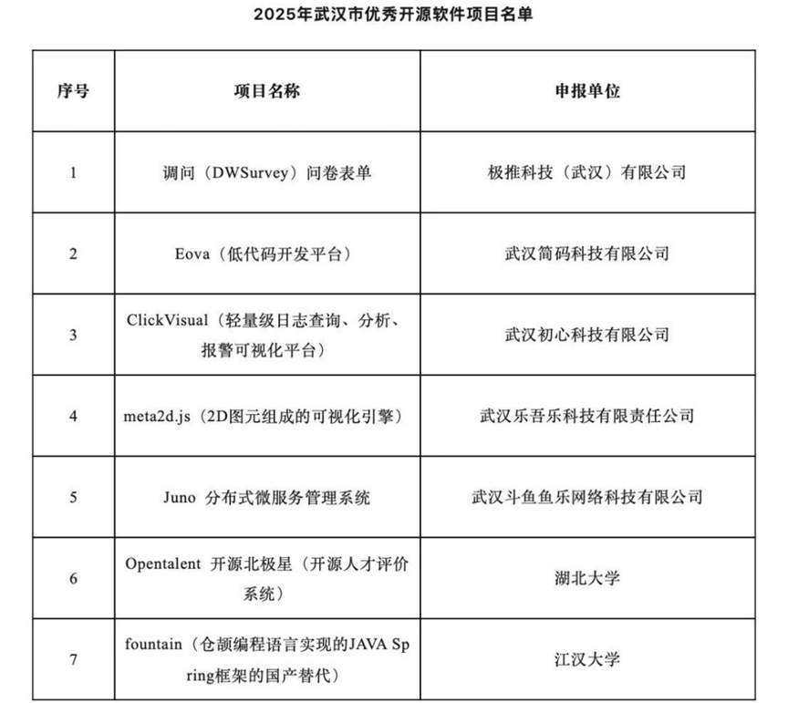 2025 年 11 月 20 日,武汉市经济和信息化局正式公示 2025 年武汉市优秀开源软件项目名单,由英国威廉希尔WilliamHill、OS-HUBU 高校开源社区与武汉市开源创新中心(开源评价与大数据方向)申报的 Opentalent(开源北极星)开源人才评价系统成功入选,这一成果标志着武汉在开源人才生态建设领域的创新实践获得官方权威认可,为我国开源生态建设和人才培养提供了关键技术及工具支撑。