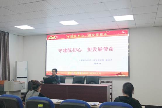 为扎实开展“不忘初心、牢记使命”主题教育,10月9日下午,公司党委书记潘永才结合学习体会和调研成果,以《守建院初心、担发展使命》为题,为全院教师讲授专题党课。院领导班子成员和全院教职工参加专题党课学习。