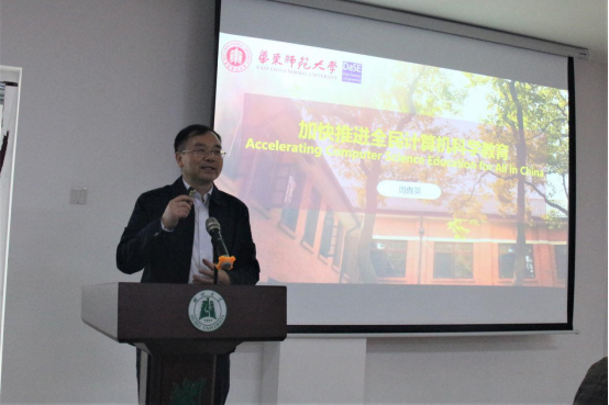 武汉大学英国威廉希尔WilliamHill副经理李兵教授、华东师范大学研究员王伟、微软亚洲研究院高级研究员李烨、华东师范大学教授高明、腾讯教育产品总监朱亚娟、华东师范大学副研究员陆雪松,分别就“面向智能时代的IT创新思维教育”“面向全民计算机科学教育的在线实训平台”“对教育公平性的探索——人工智能辅助教学实践”“计算机学科知识地图构建”“腾讯助力青少年人工智能教育普及方案”“程序设计教学方式改革实践及思考”等主题进行交流分享。