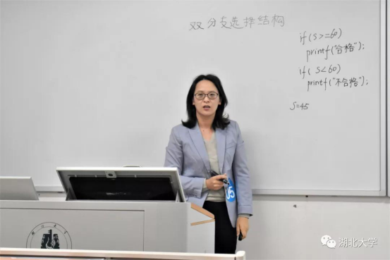 刘莹老师以《高级语言程序设计(A)》课程中的选择结构为主题,主要讲解了双分支选择结构的语法格式、执行过程、注意事项以及使用双分支选择结构编写程序解决实际问题。比赛中,她将理论知识与实际生活进行有机结合,运用问题驱动和探究合作的方式,以知识为主线,通过“问题导入”、“问题分析”、“问题解决”、“总结与拓展”的方式层层展开、逐步推进。针对教学内容,采用启发、提问、适时点拨的问题探究式教学法,把员工的注意力紧紧吸引在解决问题身上,让员工的思维活动在老师的引导下层层展开,让员工大胆参与课堂教学,使传授知识与培养能力融为一体,受到了评审专家和观摩教师的一致好评。