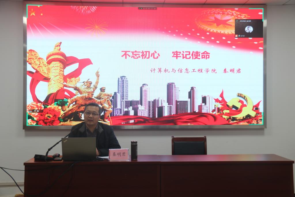 秦明君在《不忘初心,牢记使命》为专题的辅导报告中指出:共产党人的初心是为中国人民谋幸福,共产党人的使命是为中华民族谋复兴。秦明君以革命时期、建设时期、改革时期、新时代为时间线,为学员系统阐述了中国共产党“初心使命”的历史起因,并结合自身经历讲述了如何践行“守初心,担使命”。他强调,践行“初心、使命“的总要求是聚焦守初心:树立正确的群众观;聚焦担使命:增强历史使命感;聚焦找差距:树立正确的人生观;聚焦抓落实:树立正确的工作观。守初心要“诚”、担使命要“勇”、找差距要“准”、抓落实要“狠”。