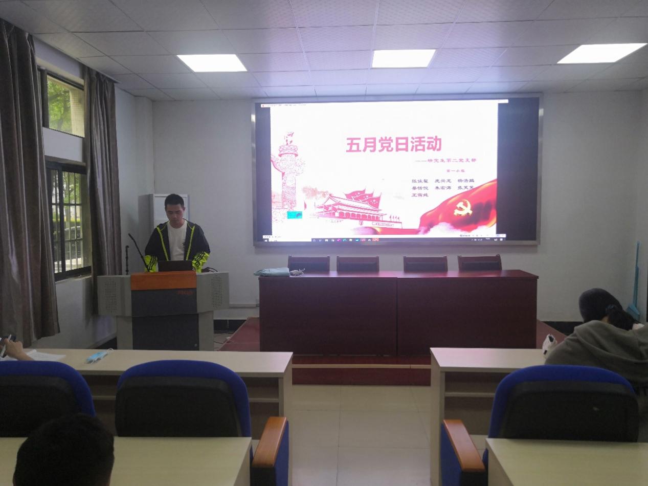 白友恒同志在研究生第一党支部的党史讲堂中,以“我所熟知的中共人物”为题,为支部党员讲述党史故事。他重点讲解了杨靖宇将军殉国的历史,展示了抗战时期一位中共党员如何抵挡外敌入侵、为新中国的解放献出了宝贵的生命的历史。党支部第三党小组的陈梦月同志表示,习近平总书记的讲话让她明白了生态环境和经济发展之间的必然联系,绿水青山就是金山银山这句话给了她很大的启发。自己将在平时的生活中,多向室友和同学宣传爱护环境的知识,为保护环境做出贡献。