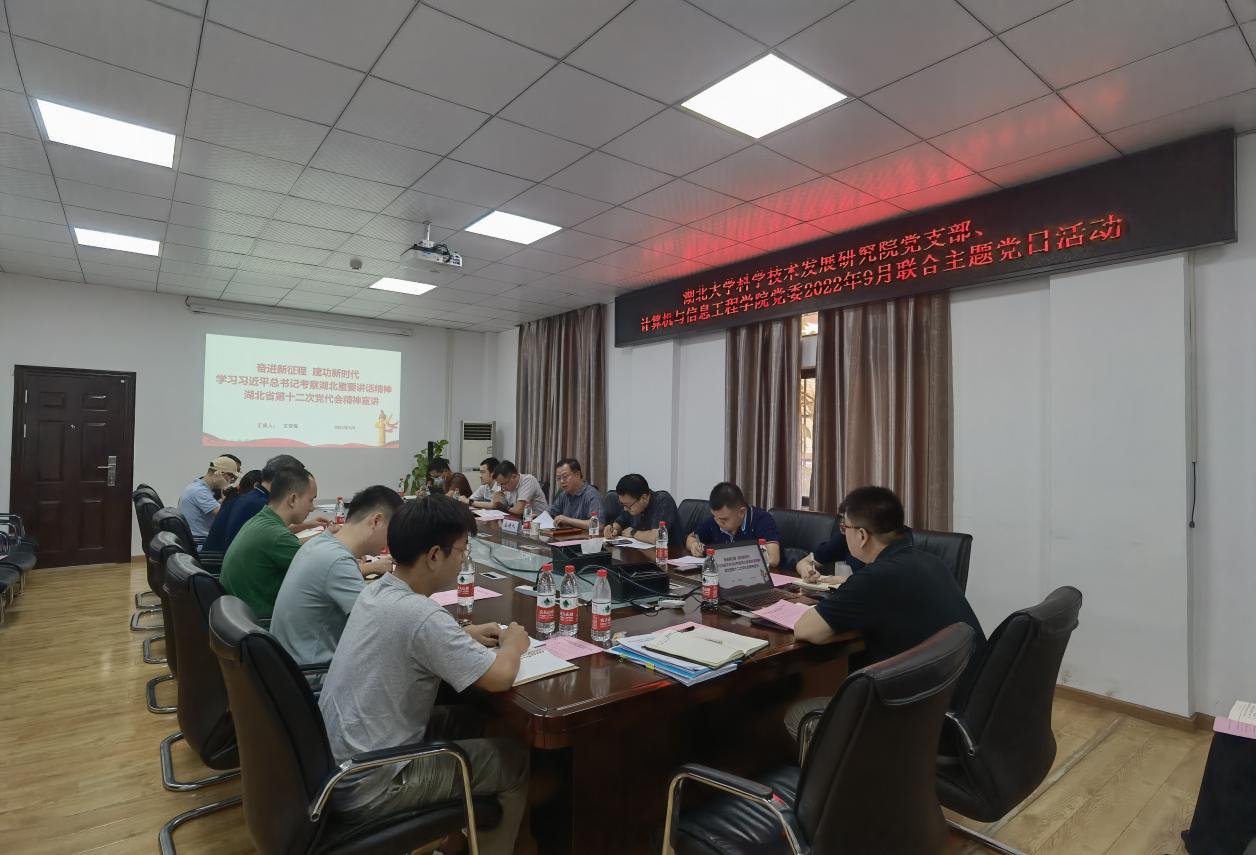 为深入学习宣传贯彻省第十二次党代会精神,根据公司统一安排,9月15日下午,校科学技术发展研究公司党支部和计算机与信息工程公司党委在公司201会议室开展联合主题党日活动,公司学习宣传湖北省第十二次党代会精神宣讲团成员、科学技术发展研究院经理王贤保作宣讲。校科学技术发展研究公司党支部党员,公司党委委员、班子成员、支部书记、教师员工党员代表参加活动。公司党委书记秦明君主持活动。