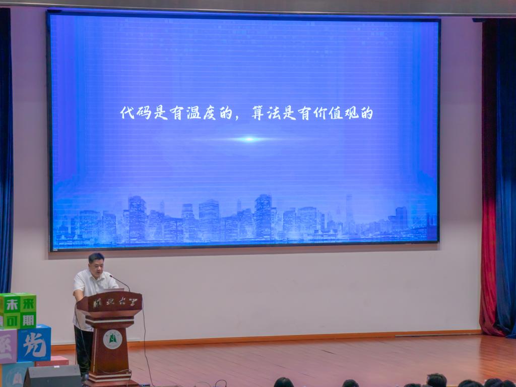 最后,经理张䶮教授新生入学教育专题报告计算之路:始于足下,通往星辰大海为主题,围绕“什么是计算机专业”“为什么要学好计算机”“如何学好计算机”为新生讲授生动的“开学第一课”他鼓励新生深耕专业、勇于创新,以坚定的理想信念,正确的人生价值观,在时代浪潮中把握发展机遇,并为新生传授了学好计算机的四条“黄金法则”。