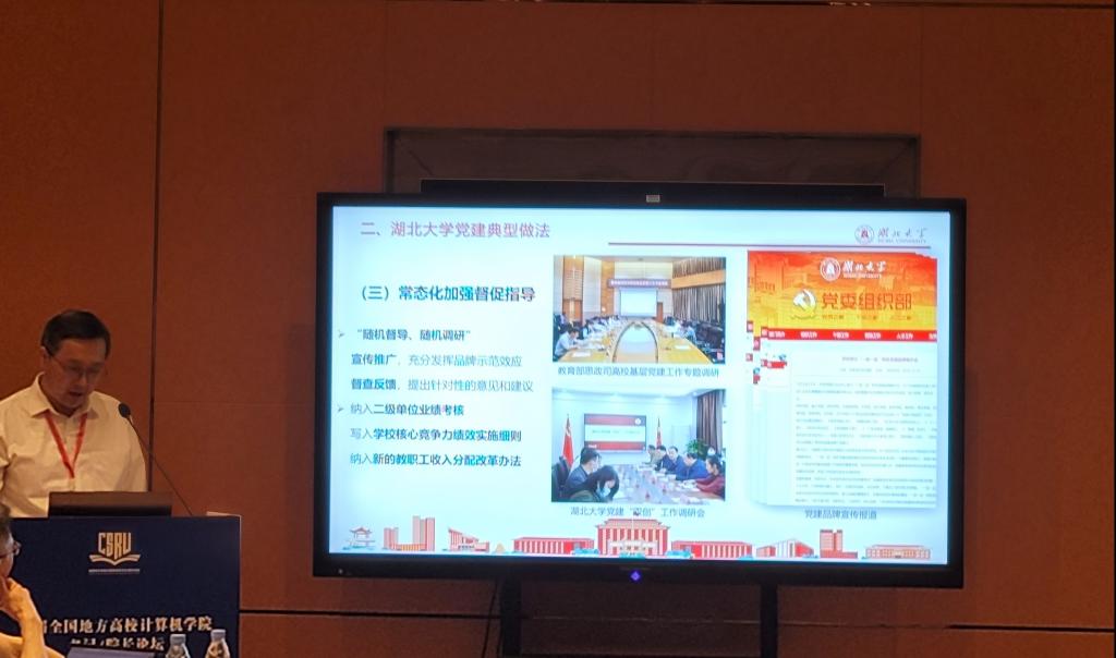 本次论坛包括主论坛特邀专家报告和分论坛主题交流两个环节。其中,在主论坛特邀专家报告环节,来自安徽大学、暨南大学和广州大学的特邀专家围绕主题进行了经验分享和深入的交流。分论坛涵盖“高质量党建引领计算机事业发”“高水平计算机学科与高校发展”“一流计算机专业创新拔尖人才培养”“产教融合服务地方经济发展”等4个主题,公司教师分别参加论坛交流并在“高质量党建引领计算机事业发展”分论坛中作主题报告。