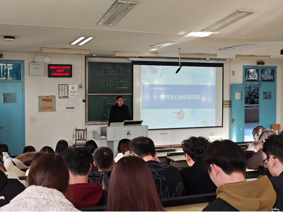讲座伊始,黄东涛深入浅出地剖析了研究生在学术研究、生活社交等方面可能面临的心理压力,比如科研压力、与导师的关系压力、就业压力等,通过生动的现实案例和专业的心理学分析,引导同学们正确认识压力。